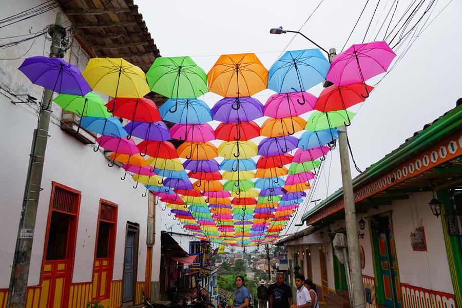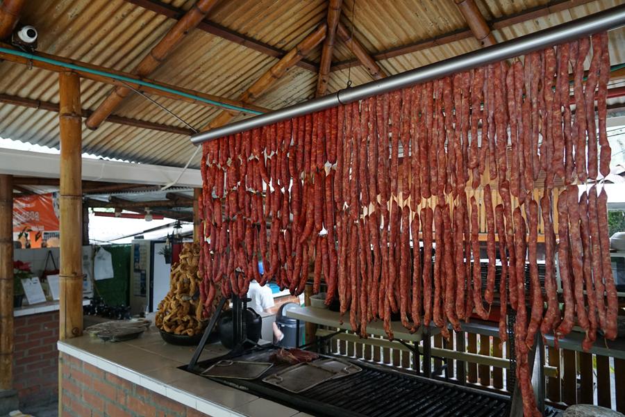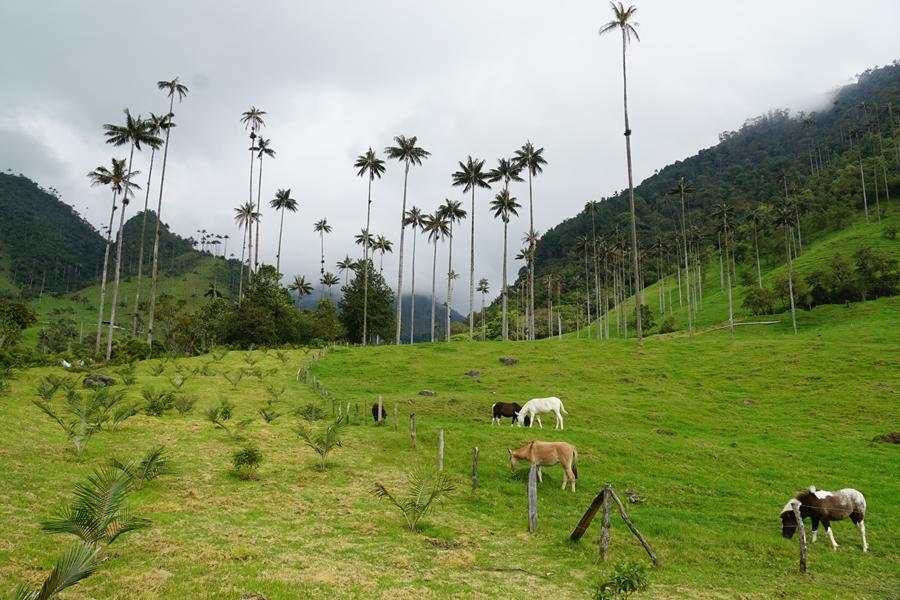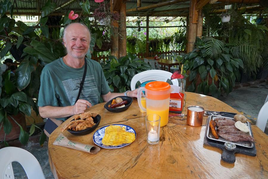 In Zipaquira besuchen wir die Salzkathedrale, eines der beeindruckenden Bauwerke das wir jemals gesehen haben, tief unten im alten Salzbergwerk wurde eine gigantische Kathedrale errichtet, aus dem Salzgestein herausgegraben, wir sind früh dort und können das Wunder noch vor dem großen Besucheransturm genießen. Honda ist (im Gegensatz zur Straße dorthin) unspektakulär aber hübsch, es ist heiß und schwül, welch ein Gegensatz zum Hochland! In Manizales übernachten wir nach einer langen Autofahrt in einer kleinen Finca im Dschungel (wir danken dem Schutzheiligen der Mietwagen dass er uns einen Allrad spendiert hat), von dort fahren wir dann nach Salento um im Tal der Wachspalmen wandern zu gehen. Trotz Trockenzeit regnet es jeden Tag, es gibt tropisches April-Wetter im Gebirge und wir werden täglich „waschelnass“. Salento ist der Tourismus-Hotspot schlechthin, das Stadtzentrum ist ein einziger großer Künstlermarkt, wir vermuten, dass die Handwerksprodukte wirklich lokal aus Kolumbien kommen und nicht aus China, aber ganz sicher bin ich mir nicht. Die Landschaft ist wunderschön, hohe Berge, liebliche Täler, Kaffeeplantagen, es muss ein Paradies zum reiten sein und wir sehen auch viele Pferde. Am nächsten Tag sind wir schon wieder „on the road“, es geht übers Gebirge zurück Richtung Bogota, gemeinsam mit unzähligen Schwerst-LKWs. Diese Monster-Trucks kriechen über die Anden-Pässe, keuchend und schwarzen Qualm ausatmend, bei manchen fürchten wir, dass sie jeden Moment auseinanderbrechen, andere wiederum blitzen und blinken vor lauter Chrom und poliertem Edelstahl und sind richtige „Hingucker“, auf Aerodynamik wird hier verzichtet. Mit einer Durchschnittsgeschwindigkeit von 25km/h zischen wir die 150 km bis zur nächsten Übernachtungs-Station in Ipaque, dort haben wir uns in einer kleinen Finca eingemietet, die Unterkunft ist nett aber ausgesprochen „basic“. Weniger nett sind die Gelsen, die uns nicht schlafen lassen bis ich sie endlich alle erlegt habe, am nächsten Tag sehe ich an den vielen roten Flecken an der Wand, dass auch andere Gäste hier schon Jagdausflüge unternommen haben. Abends finden wir ein sehr nettes Lokal an der Straße und ich komme endlich dazu die Grill-Würste zu probieren, auf die ich mich schon seit Tagen freue. Auch Tadeja, die Ex-Vegetarierin, bestellt sich ein riesiges gegrilltes Kalbs-Steak das sie natürlich nicht alleine verdrücken kann, meine Bestellung ist auch zu euphorisch und leider kann mich danach niemand zum Auto rollen. Am nächsten Tag machen wir noch eine Wanderung in die Berge, werden natürlich ordentlich nass und fahren dann weiter Richtung Bogota, wo wir nach einem weiteren Übernachtungsstopp wieder gut ankommen. Die letzten 100 km fahren wir gemeinsam mit hunderten Radfahrern, die auf der Schnellstraße in den Andenpässen einen Wochenendausflug machen. Radfahren ist ziemlich „in“ in Bogota und Umgebung, wir sind ziemlich beeindruckt wie fit die Menschen dort sind.