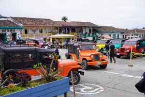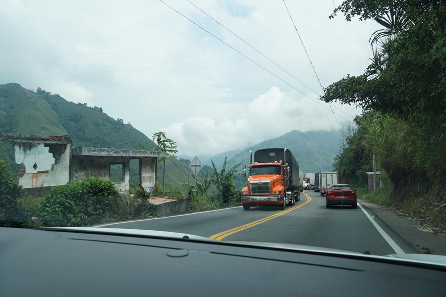 Nach drei Tagen ist es genug Großstadt für uns, die Ruta del Cafe ruft, wir bekommen ein tadelloses Mietauto, Allrad, fast neu, und dann wird der Verkehr auf uns losgelassen. Ruhig, besonnen, völlig entspannt und mit mir selbst und mit Bogota im Reinen fahre ich los, ein Lächeln im Gesicht und ein fröhliches Liedchen auf den Lippen, mindestens 30 Meter geht das so, dann sind wir draußen aus dem Mietwagen-Gelände und aus James Cool wird Herbert der Entnervte, aus ist es mit der Gelassenheit. Vier Stunden brauchen wir für die ersten 40 Kilometer, ich bin schweißgebadet und fix und fertig. So liebenswürdig die Kolumbianer:innen sind wenn sie nicht im Auto sitzen, so schnell verwandeln sie sich in Mr. Hyde wenn sie sich ans Steuer setzen, dann herrscht erbarmungslos das Gesetz des Stärkeren. Aber je weiter weg wir von Bogota kommen, umso höher sind die Überlebenschancen und letztendlich sind wir dann 1000 km ohne den kleinsten Kratzer unterwegs.