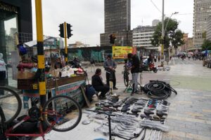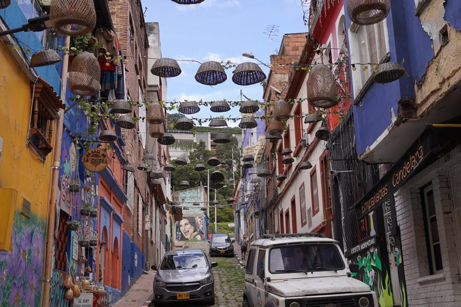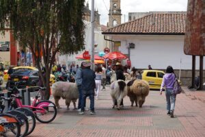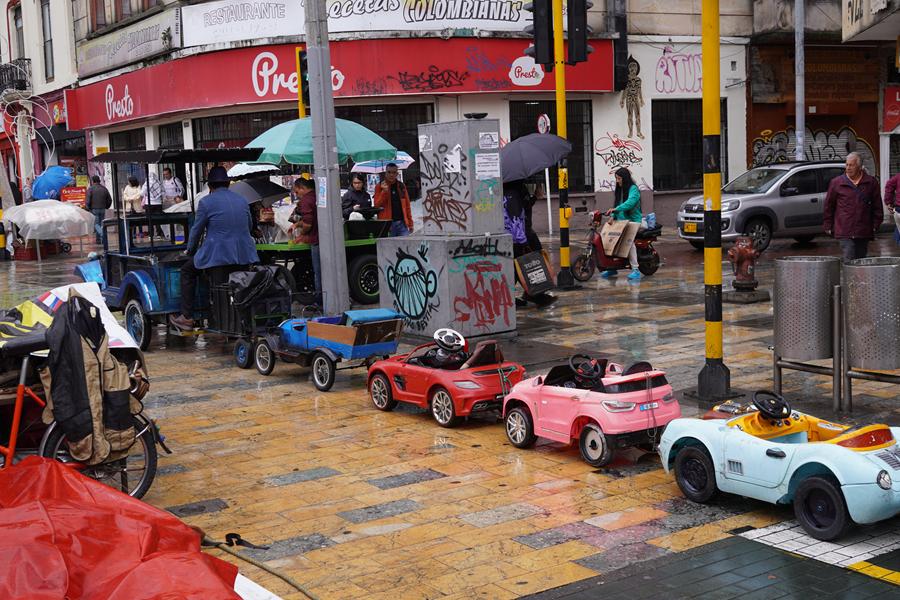 Bogota empfängt uns mit Nieselregen und kühler Bergluft, gut angereichert mit den Abgasen von Unmengen von Autos. Der Verkehr ist im wahrsten Sinne des Wortes atemberaubend, die zwei-spurigen Fahrzeuge stehen im Stau, die einspurigen rasen links und rechts vorbei, es ist – vorsichtig ausgedrückt – gewöhnungsbedürftig. Wenn ich daran denke, dass sich Tadeja eine Rundreise mit dem Mietwagen in den Kopf gesetzt hat bekomme ich Bauchkrämpfe, wir sind ja außereuropäischen Verkehr gewohnt, aber Bogota spielt hier in einer anderen Liga. Um das Ganze irgendwie in den Griff zu bekommen dürfen Autos immer nur an jedem zweiten Tag fahren, abhängig von der letzten Ziffer am Nummernschild. Nur Samstag und Sonntag ist es für alle frei, am Sonntag sind – als Sonderprüfung – viele Straßen für KFZ gesperrt und nur für Fußgänger und Radfahrer freigegeben, in den restlichen kollabiert der Verkehr.