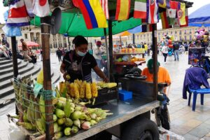 Bogota liegt auf 2640 m Seehöhe, und das merken wir auch als wir mit Rucksack und Reisetasche (hurra, Gepäck ist auch da!) etwas kurzatmig zum Taxi marschieren. Aus Mexiko sind wir „Fixpreise“ gewohnt, aber wie Kolumbien mit Touristen umgeht wissen wir noch nicht, also erkundigen wir uns vorab bei den Einheimischen was denn ein Taxi so kosten darf. Gute Idee – denn im Besitz dieser Geheiminformationen reduziert sich der Fahrpreis gleich einmal um die Hälfte. Also Achtung. Auch Geldwechseln will gelernt sein, mit jedem Meter, den wir uns vom Flughafen entfernen, steigt der Kurs, am besten wechselt allerdings wer gar nicht wechselt und die Kreditkarte benutzt, diese wird auch überall – außer bei Iberia – akzeptiert.