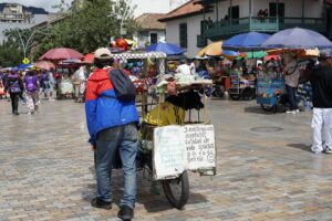 Drei Tage lang tauchen wir in die Großstadt ein, es gibt einen Hausberg mit Seilbahn und Zahnradbahn, ein hübsches koloniales Zentrum, drumherum eine moderne Großstadt, relativ wenig Touristen, viele Flüchtlinge aus Venezuela und sehr sehr viel Armut und Menschen, die auf der Straße leben und sich mit dem Verkauf von irgendwelchen Kleinigkeiten durchkämpfen. Die Stadt hat einen anderen Rhythmus als wir das aus Mexiko gewohnt sind, die meisten Lokale sperren zwischen 1800 und 1900 zu, zu dieser Zeit sperren sie in Mexiko manchmal erst auf. Es gibt deftige Suppen mit viel Fleisch, Vegetarier müssen hier leider verhungern, es wird auf Teufel komm raus gegrillt und alles was vier Beine hat muss sich beeilen damit es nicht auf einem Teller landet.